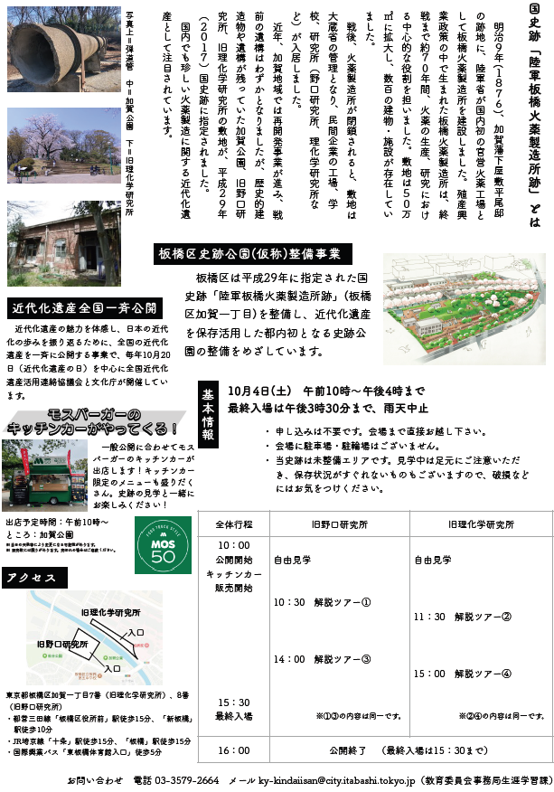 お問い合わせ先 板橋区教育委員会事務局生涯学習課近代化遺産利活用担当 03-3579-2664